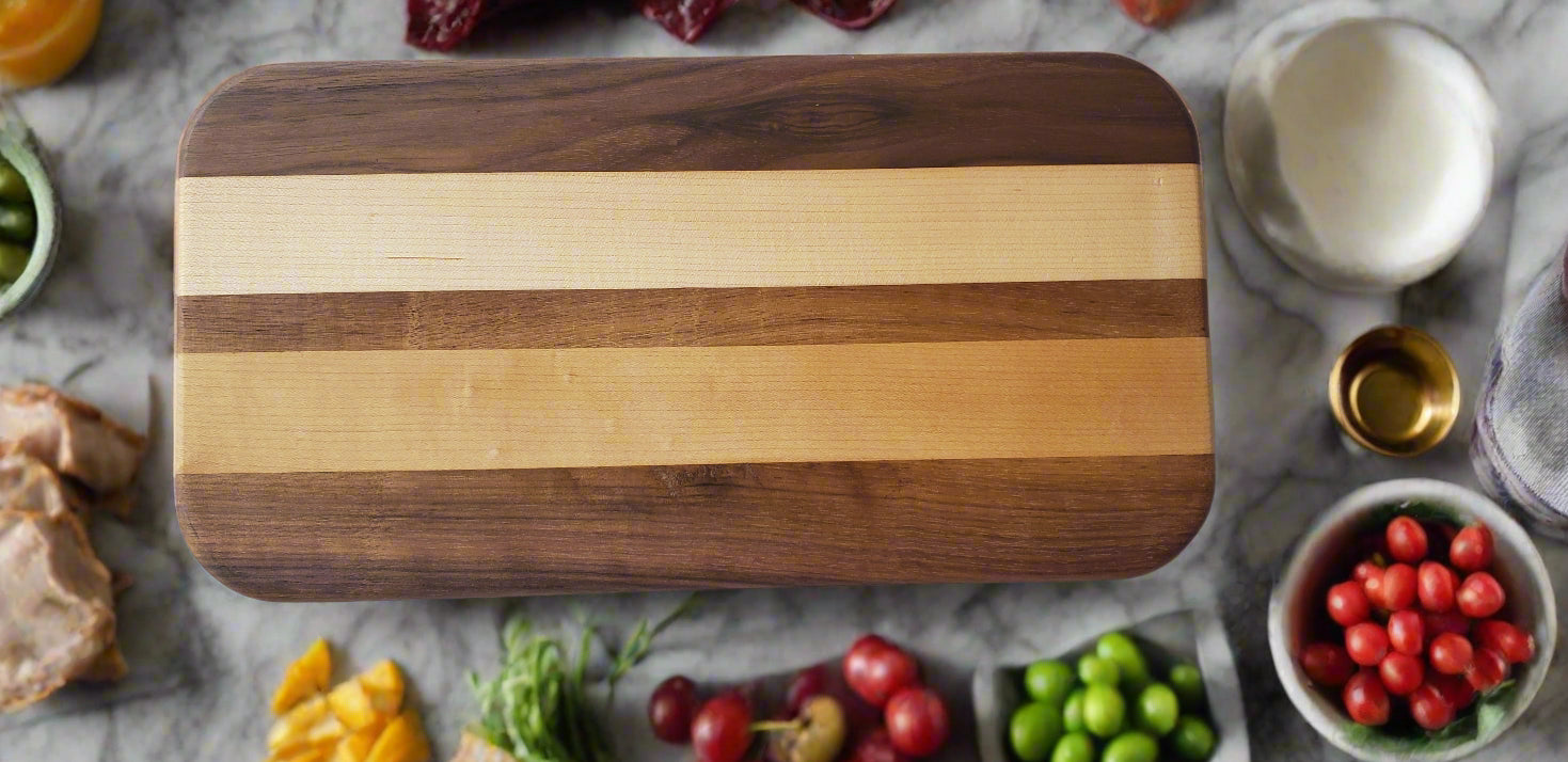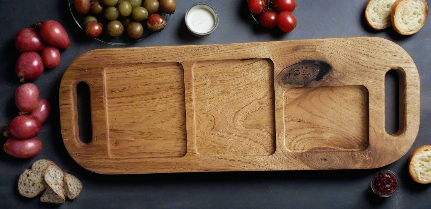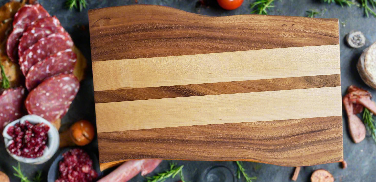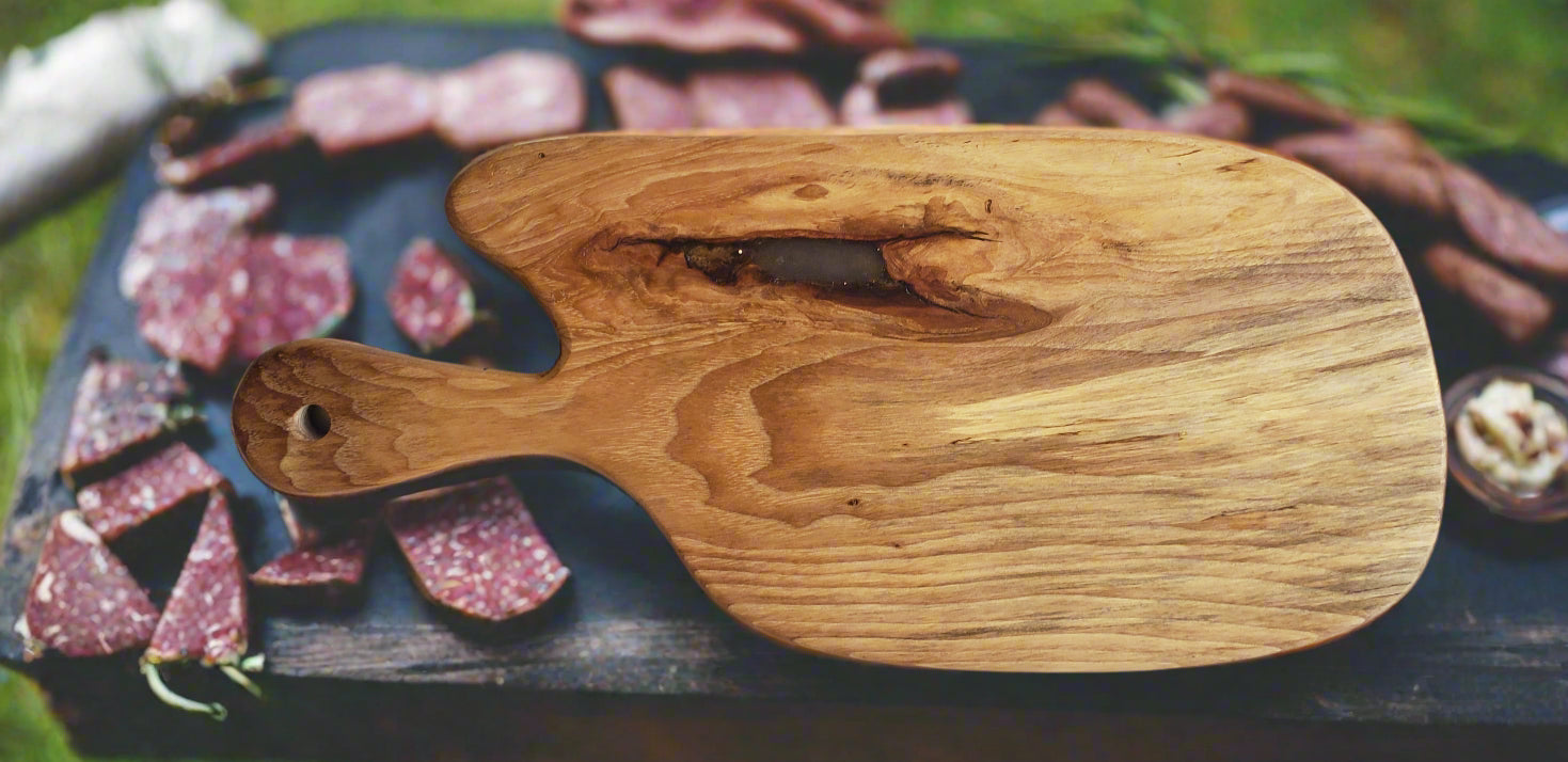Expertly crafted with non-toxic stunning hardwood and coated with Beatty's Charcuterie Board Butter polish for added protection. They are too nice to use as a cutting board but can certainly double up as one when in a pinch.