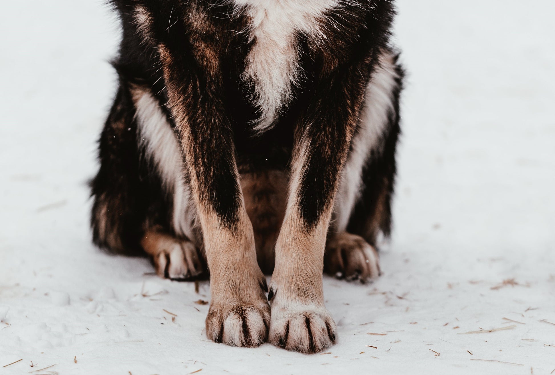 Winter temperatures and hard surfaces can cause paw pads to become sore and cracked in pets.